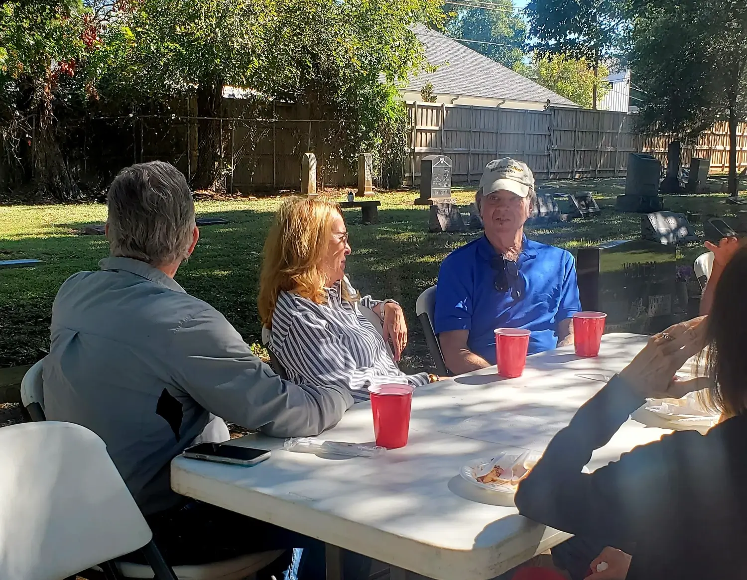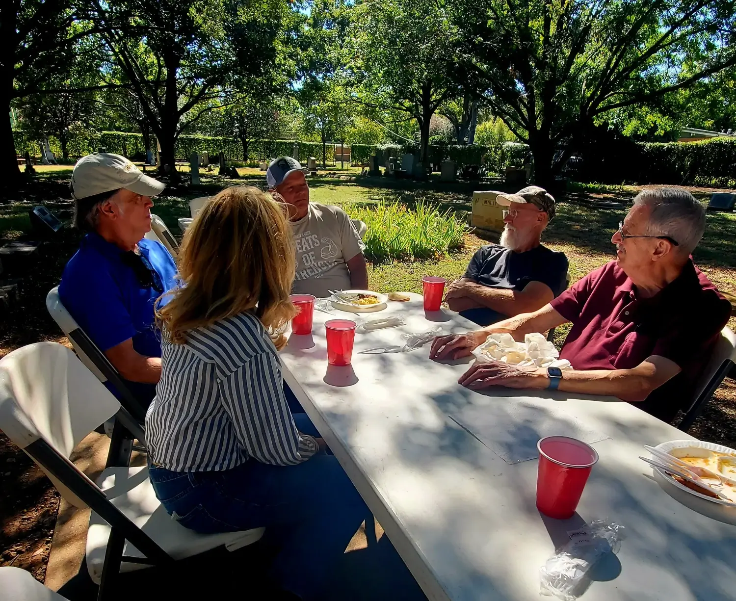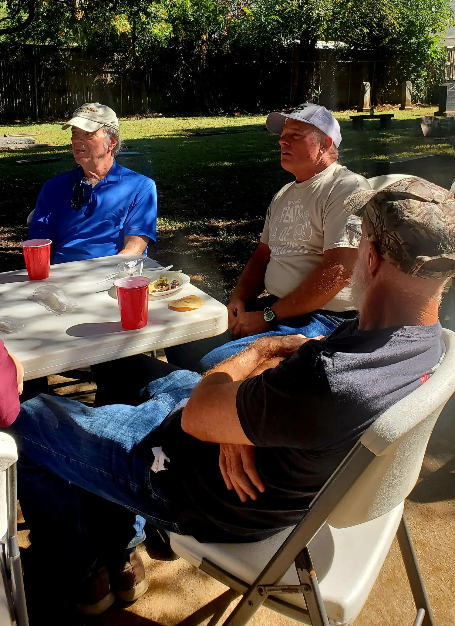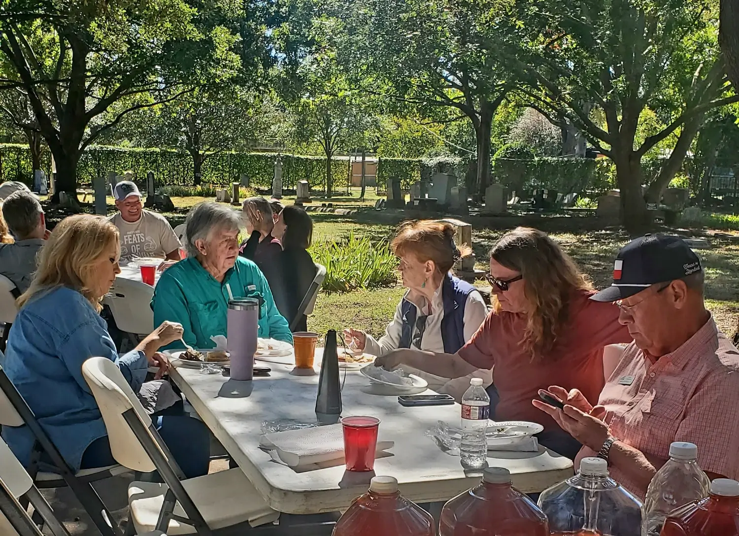 Merrell Cemetery Maintenance Association annually gathers its members with a picnic on the grounds of the cemetery. The 2024 picnic was held on June 22. The weather was hot but the members represented descendants of the founding families. There were about 30 in attendance regardless of the temperature. Members drive from over 100 miles away to attend and some pick up cousins along the way to reminisce.