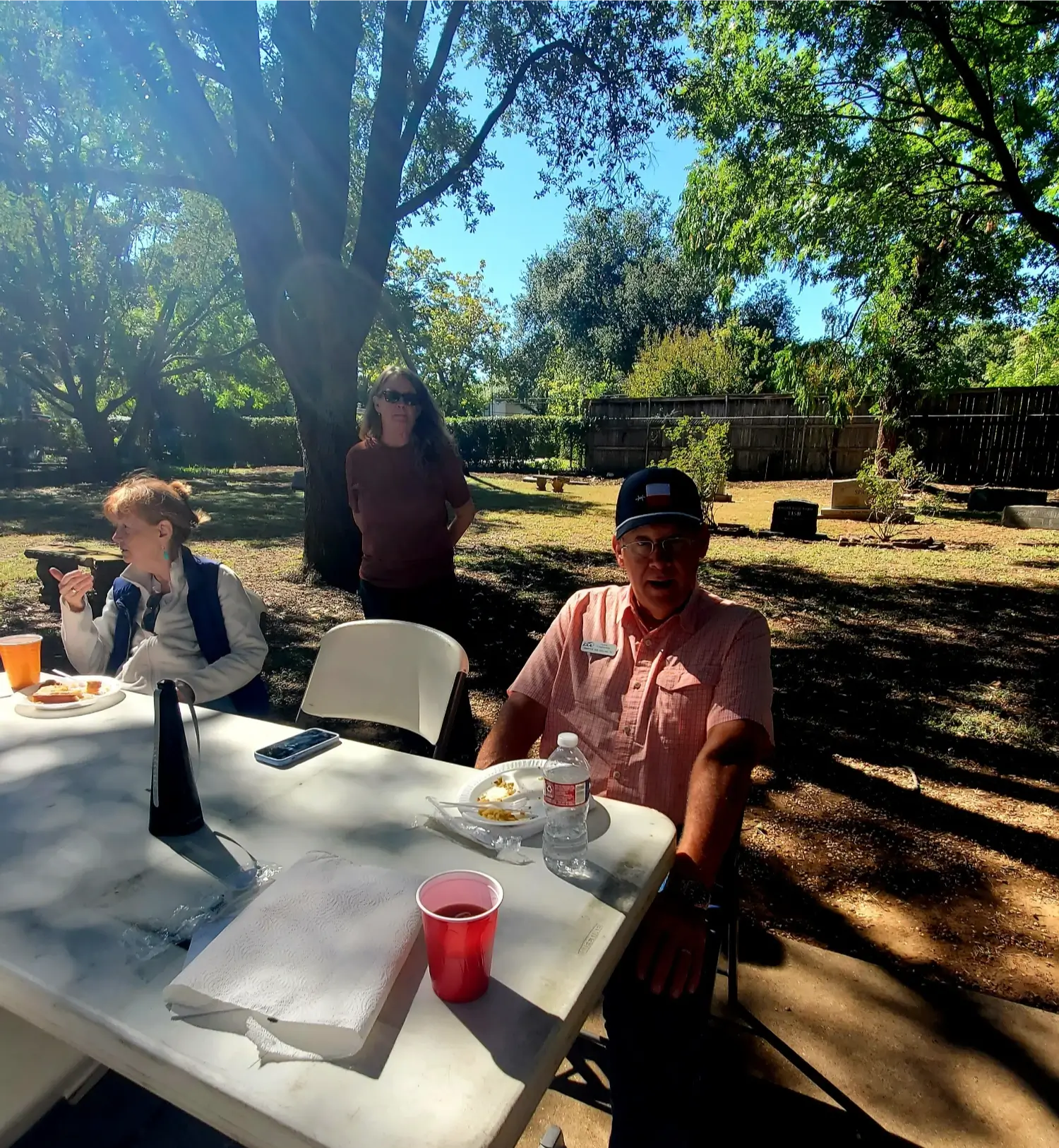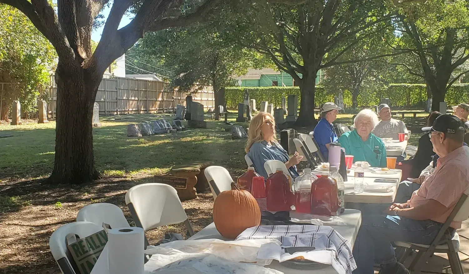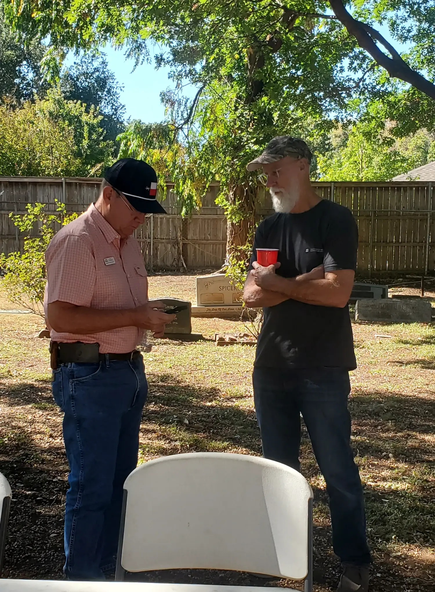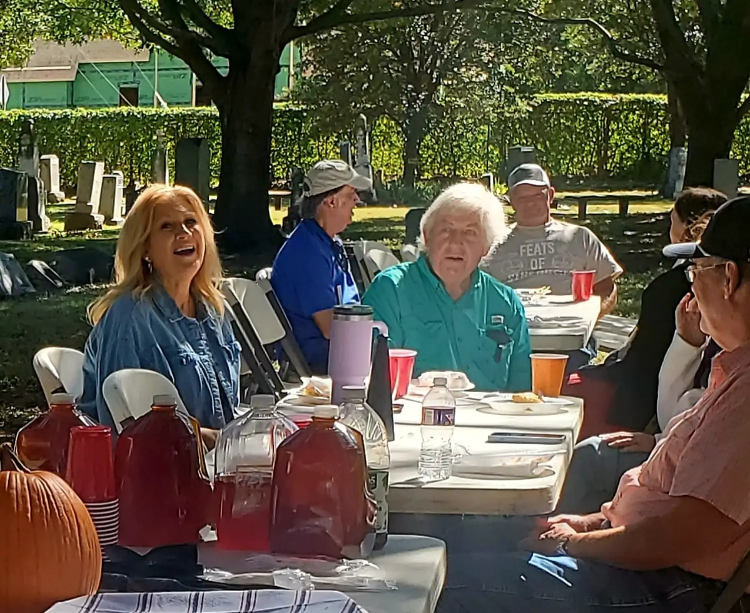 Merrell Cemetery Maintenance Association annually gathers its members with a picnic on the grounds of the cemetery. The 2024 picnic was held on June 22. The weather was hot but the members represented descendants of the founding families. There were about 30 in attendance regardless of the temperature. Members drive from over 100 miles away to attend and some pick up cousins along the way to reminisce.